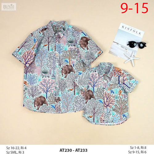 A419030 - Áo sơ mi tay ngắn, hoạ tiết rực rỡ sô lụa, si cotton hoặc kaki thô cho bé trai_Size 9-15