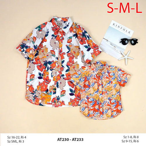 A419035 - Áo sơ mi tay ngắn, hoạ tiết rực rỡ sô lụa, si cotton hoặc kaki thô cho bé trai_Size SML