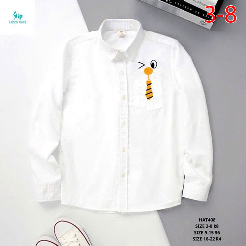 A426023 - Áo sơ mi dài tay thêu cavat chất liệu Ford cho bé trai_Size 3-8