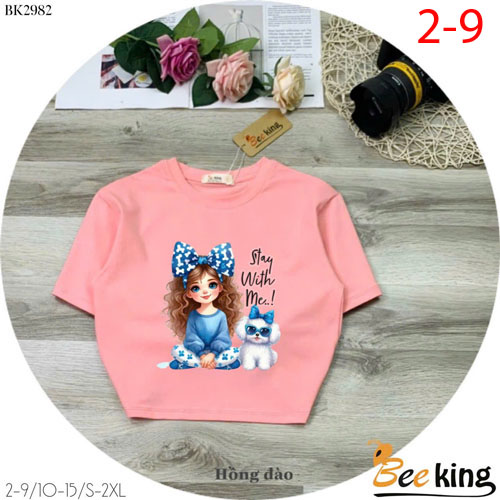 A427895 - Áo form lửng cô gái và cún Stay with me thun cotton_Size 2-9