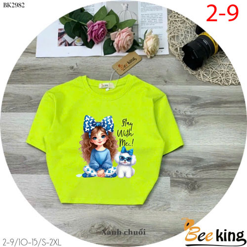 A427898 - Áo form lửng cô gái và cún Stay with me thun cotton_Size 2-9 - Áo form lửng cô gái và cún