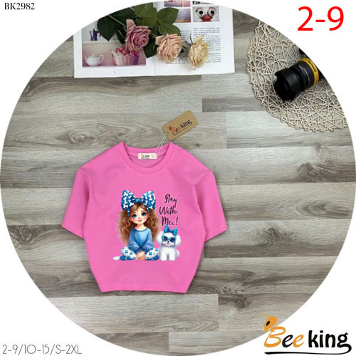 A427901 - Áo form lửng cô gái và cún Stay with me thun cotton_Size 2-9