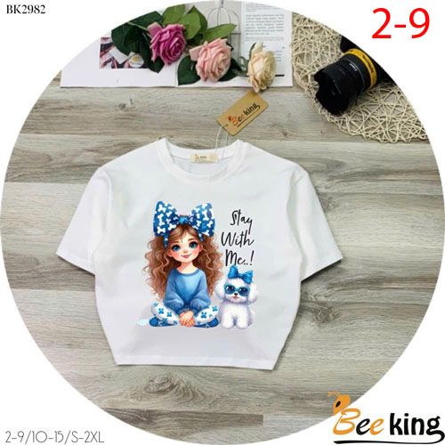 A427902 - Áo form lửng cô gái và cún Stay with me thun cotton_Size 2-9