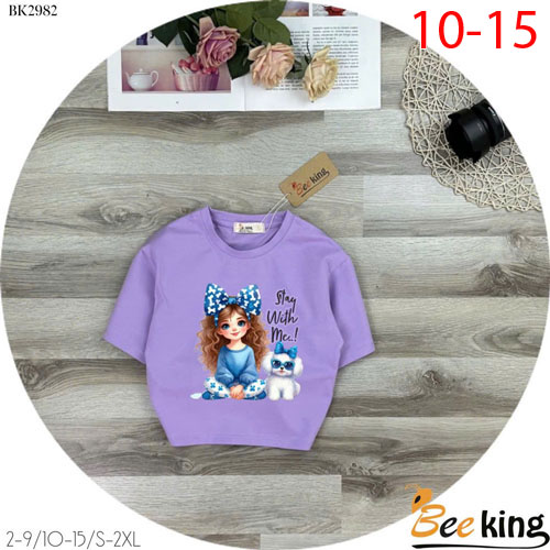 A427907 - Áo form lửng cô gái và cún Stay with me thun cotton_Size 10-15