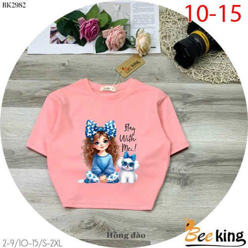 A427916 - Áo form lửng cô gái và cún Stay with me thun cotton_Size 10-15