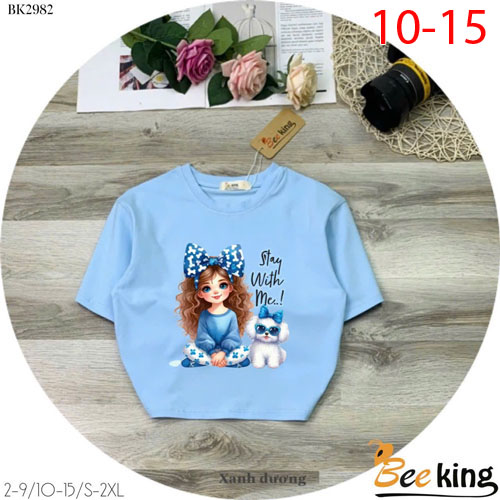 A427919 - Áo form lửng cô gái và cún Stay with me thun cotton_Size 10-15