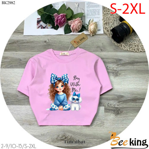A427920 - Áo form lửng cô gái và cún Stay with me thun cotton_Size S-2XL