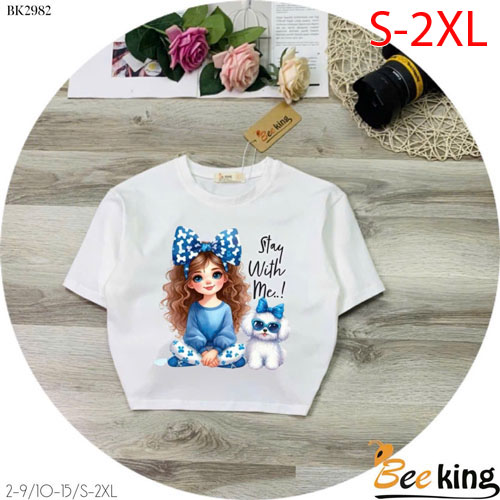 A427923 - Áo form lửng cô gái và cún Stay with me thun cotton_Size S-2XL