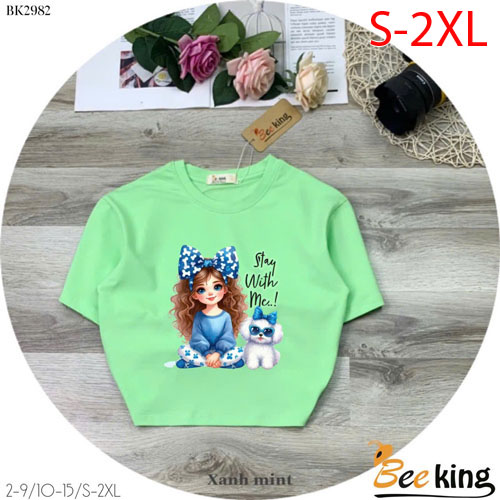 A427929 - Áo form lửng cô gái và cún Stay with me thun cotton_Size S-2XL - Áo form lửng cô gái và cú
