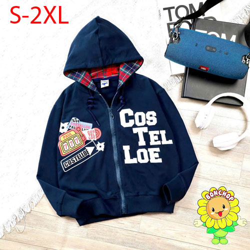 A428369 - Áo khoác da cá 4C cho bé trai năng động lót nón phối sọc cá tính in chữ COS TEL LOE_Size S