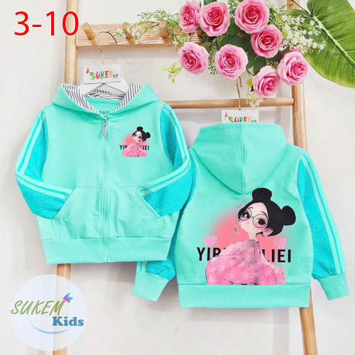 A429189 - Áo khoác ép cô gái cute phun cham trước sau chất Da cá coton 4c bo tay và lai đặt dệt_Size