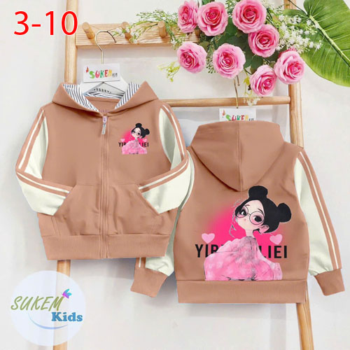 A429190 - Áo khoác ép cô gái cute phun cham trước sau chất Da cá coton 4c bo tay và lai đặt dệt_Size