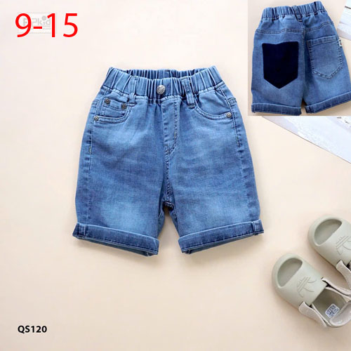 A432664 - Quần short jean bé trai túi phối màu độc lạ jean lửng ngắn, lưng thun_Size 9-15