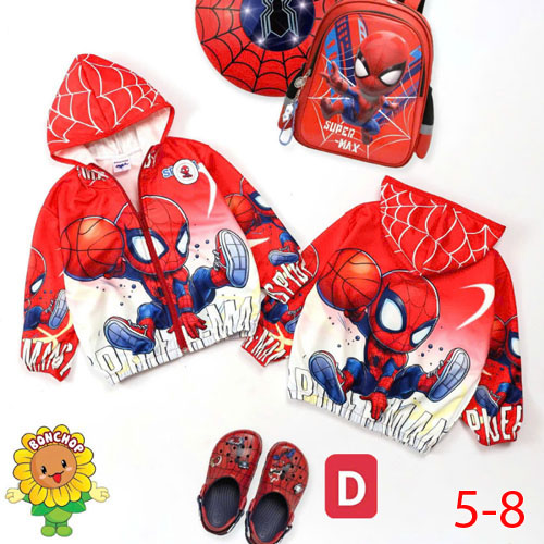 A435904 - Áo khoác gió chống mưa siêu nhẹ in người nhện_Size 5-8