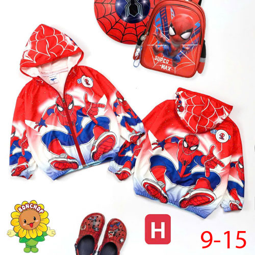 A435917 - Áo khoác gió chống mưa siêu nhẹ in người nhện_Size 9-15