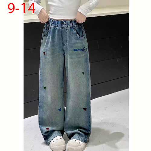 A437173 - Nexxi Win Win quần jean dài cho bé gái ống suông hottrend lưng thun Thêu họa tiết nơ siêu