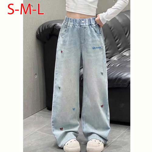 A437175 - Nexxi Win Win quần jean dài cho bé gái ống suông hottrend lưng thun Thêu họa tiết nơ siêu