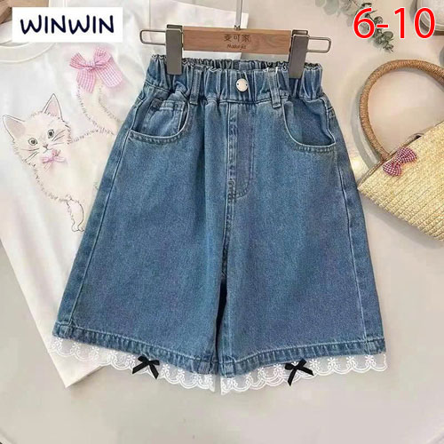A437246 - Nexxi Win Win quần jean lửng cho bé gái Lưng thun, phối túi viền ren lai đính nơ_Size 6-10