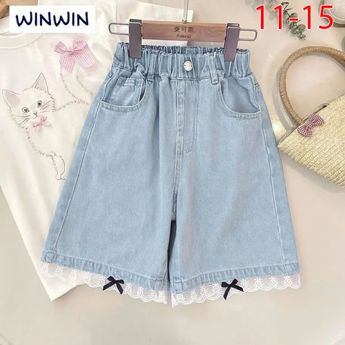 A437248 - Nexxi Win Win quần jean lửng cho bé gái Lưng thun, phối túi viền ren lai đính nơ_Size 11-1