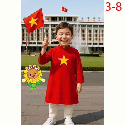 A438544 - Áo dài bé trai – bé gái in cờ đỏ sao vàng chất liệu cao cấp, co giãn nhẹ_Size 3-8
