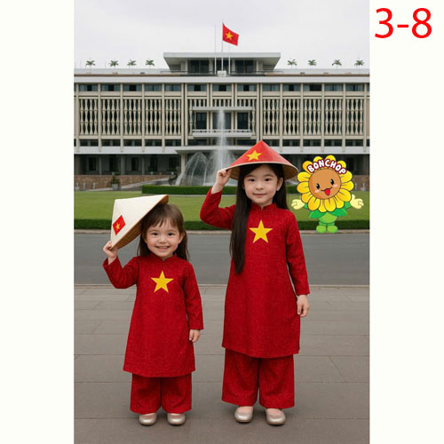 A438545 - Áo dài bé trai – bé gái in cờ đỏ sao vàng chất liệu cao cấp, co giãn nhẹ_Size 3-8