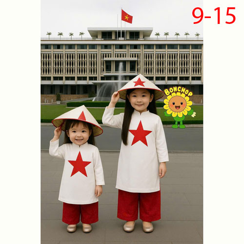 A438547 - Áo dài bé trai – bé gái in cờ đỏ sao vàng chất liệu cao cấp, co giãn nhẹ_Size 9-15