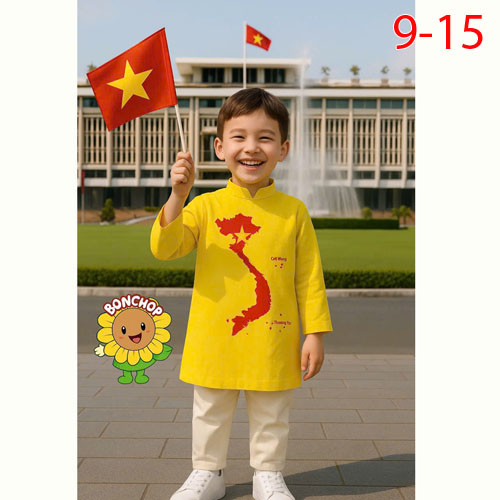 A438551 - Áo dài bé trai – bé gái in cờ đỏ sao vàng chất liệu cao cấp, co giãn nhẹ_Size 9-15