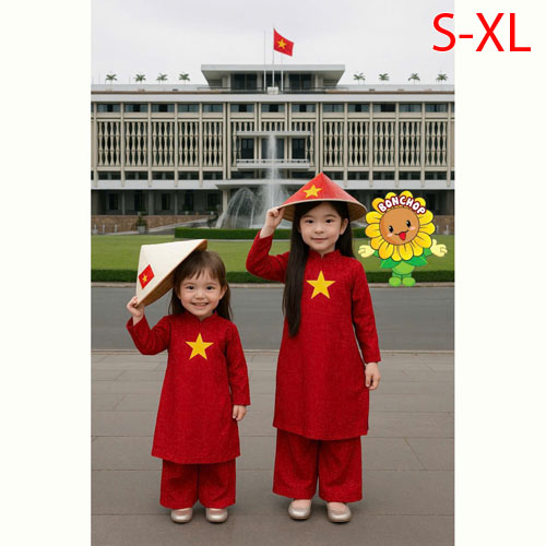 A438554 - Áo dài bé trai – bé gái in cờ đỏ sao vàng chất liệu cao cấp, co giãn nhẹ_Size S-XL