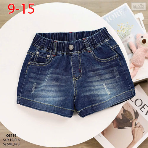 A439525 - Quần short jean form basic, lưng thun mềm mại, túi wash, hình in phong cách cho bé gái_Siz