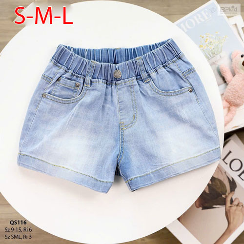 A439527 - Quần short jean form basic, lưng thun mềm mại, túi wash, hình in phong cách cho bé gái_Siz