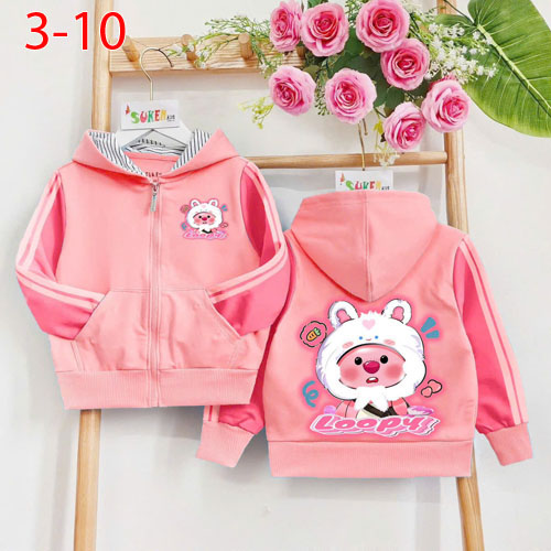 A439999 - Áo khoác ép GẤU LOOPY May Nón rất xinh tay phối màu có đắp túi 2 bên_Size 3-10