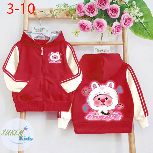 A440000 - Áo khoác ép GẤU LOOPY May Nón rất xinh tay phối màu có đắp túi 2 bên_Size 3-10