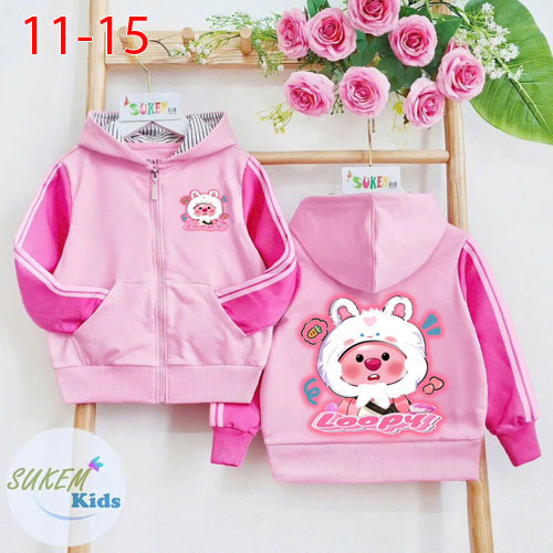 A440009 - Áo khoác ép GẤU LOOPY May Nón rất xinh tay phối màu có đắp túi 2 bên_Size 11-15