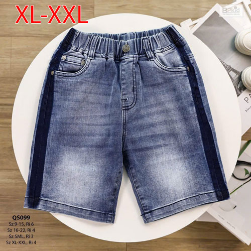 A440016 - Quần sort jean lửng ngắn, lưng thun Kiểu dáng basic phối sọc hông_Size XL-XXL