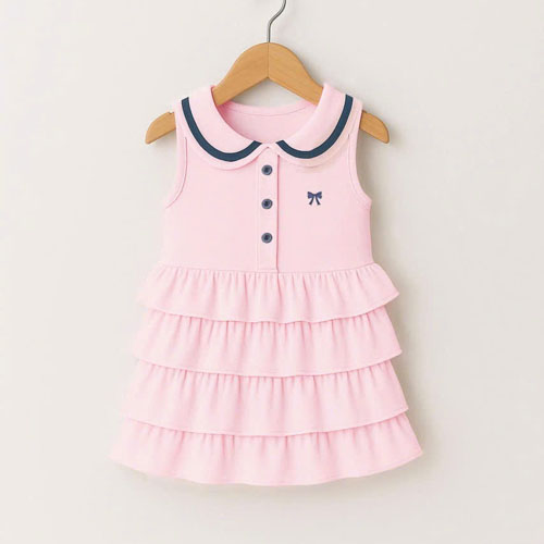 A440019 - Nexxi Win Win chào đầm polo đầm cổ sen nhiều tầng hình thêu nơ xinh xắn vải thun cá sấu co