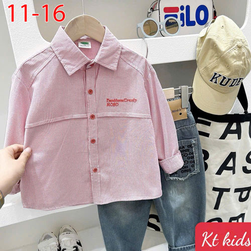 A440023 - Áo sơ mi kẻ sọc dài tay thêu Logo cao cấp cho bé trai_Size 11-16