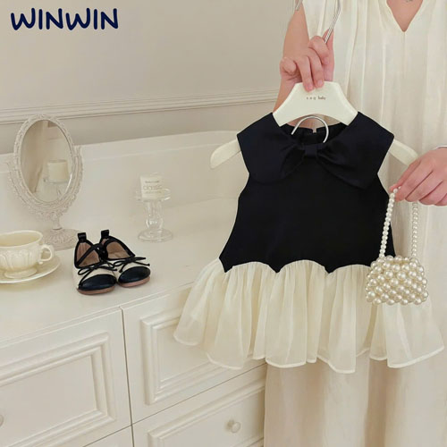A440687 - Nexxi Win Win đầm xòe tiểu thư vải kate cotton Nhật phối vải tơ voan tùng xòe, nơ vai tạo