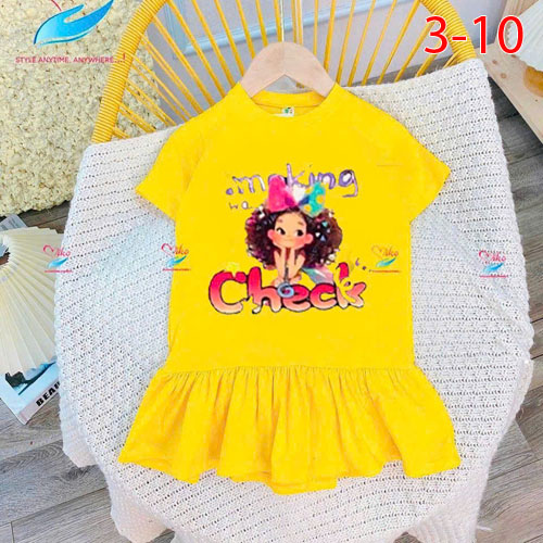 A443188 - Đầm xinh cho mẹ và bé vải cotton hình in ép nhiệt cô bé Check_Size 3-10