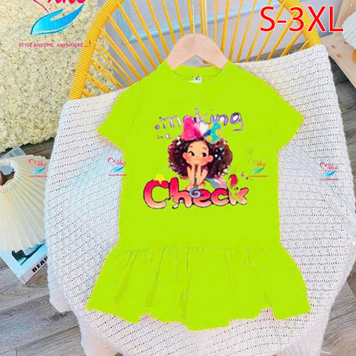 A443202 - Đầm xinh cho mẹ và bé vải cotton hình in ép nhiệt cô bé Check_Size S-3XL