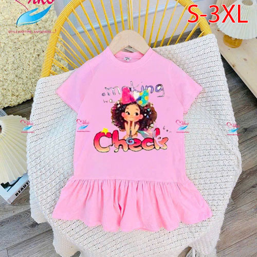 A443203 - Đầm xinh cho mẹ và bé vải cotton hình in ép nhiệt cô bé Check_Size S-3XL