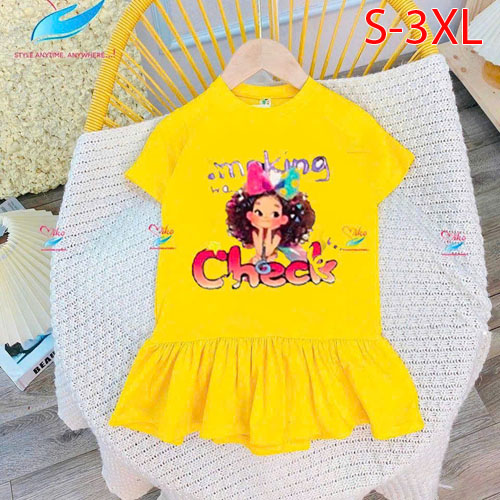 A443205 - Đầm xinh cho mẹ và bé vải cotton hình in ép nhiệt cô bé Check_Size S-3XL