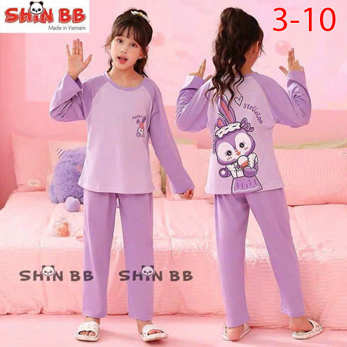 A443237 - Bộ thun dài thích hợp cho cả bé trai và bé gái cotton 4c mềm mịn_Size 3-10