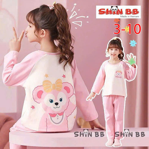 A443239 - Bộ thun dài thích hợp cho cả bé trai và bé gái cotton 4c mềm mịn_Size 3-10