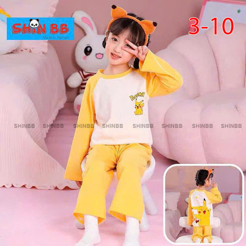 A443242 - Bộ thun dài thích hợp cho cả bé trai và bé gái cotton 4c mềm mịn_Size 3-10