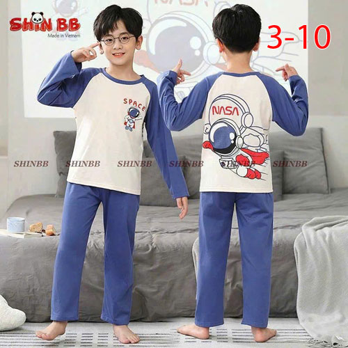 A443244 - Bộ thun dài thích hợp cho cả bé trai và bé gái cotton 4c mềm mịn_Size 3-10