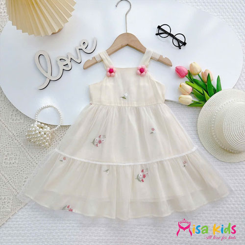 A444284 - Đầm dây tơ hoa siêu xinh gồm 3 lớp 1 lớp vải chính tơ thêu hoa mai 1 lớp lưới trắng phủ bê