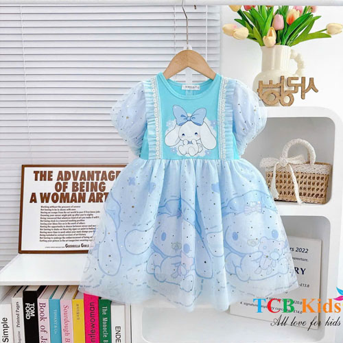A445847 - Đầm thun phối lưới CINAMOROLL chân trên thun cotton 4c dưới gồm 3 lớp_Size 1-10