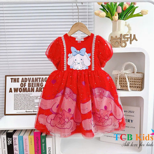 A445848 - Đầm thun phối lưới CINAMOROLL chân trên thun cotton 4c dưới gồm 3 lớp_Size 1-10
