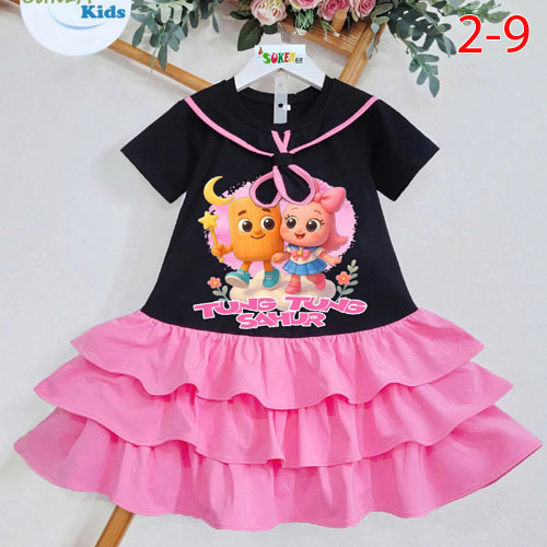 A446548 - Đầm thun may cắt nối 3 tầng cổ thắt caravat ép Tung Tung cute_Size 2-9