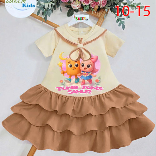 A446555 - Đầm thun may cắt nối 3 tầng cổ thắt caravat ép Tung Tung cute_Size 10-15